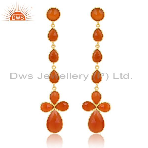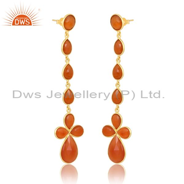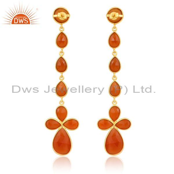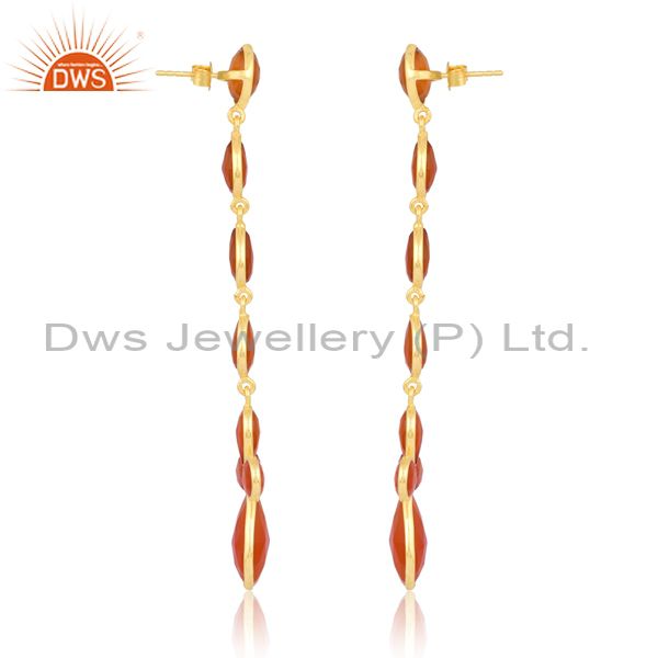 18K Gold Plated Sterling Earring With Various Cut Red Onyx