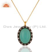 18K Gold Plated Sterling Silver Aqua Chalcedony Dangle CZ Earrings