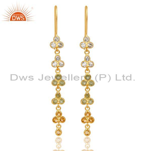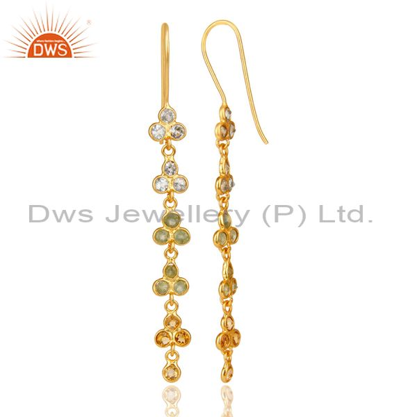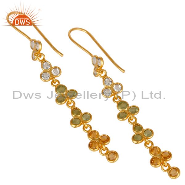 18K Gold Plated Sterling Silver Blue Topaz, Citrine And Peridot Dangle Earrings