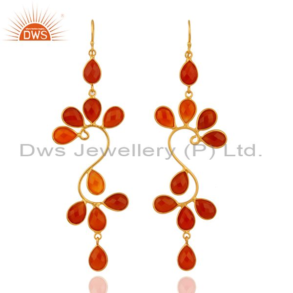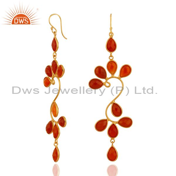 18K Gold Plated Sterling Silver Carnelian Gemstone Designer Dangle Earrings