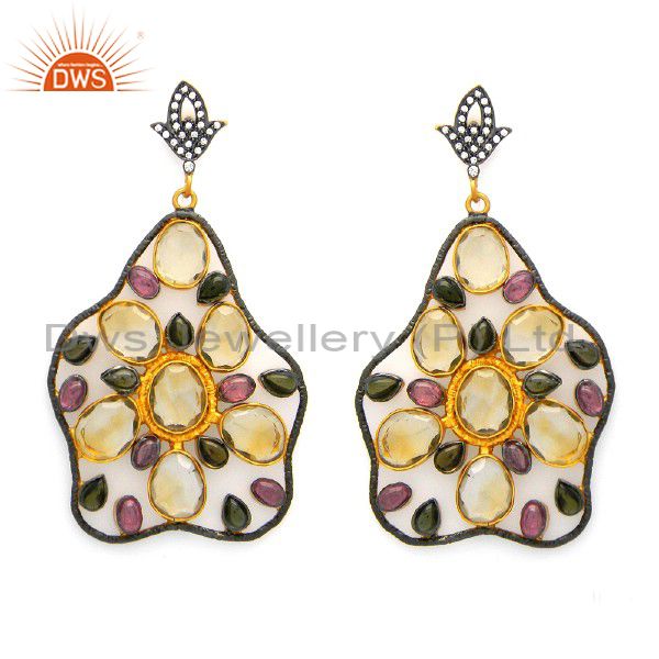 18K Gold Plated Sterling Silver Citrine And Pink Glass Designer Dangle Earrings