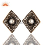 18K Gold Plated Sterling Silver Crystal Polki Vintage Look Post Dangle Earrings