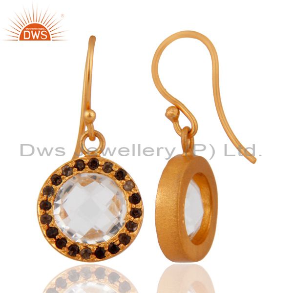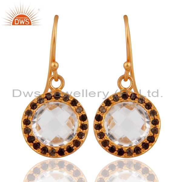 18K Gold Plated Sterling Silver Crystal Quartz And Smoky Quartz Dangle Earrings