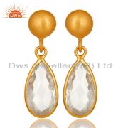 18K Gold Plated Sterling Silver Crystal Quartz Bezel Set Drop Earrings