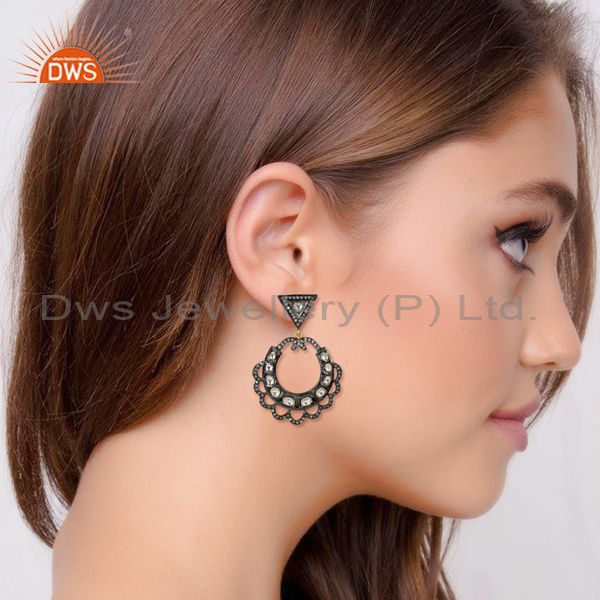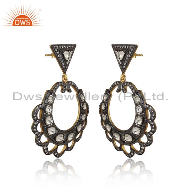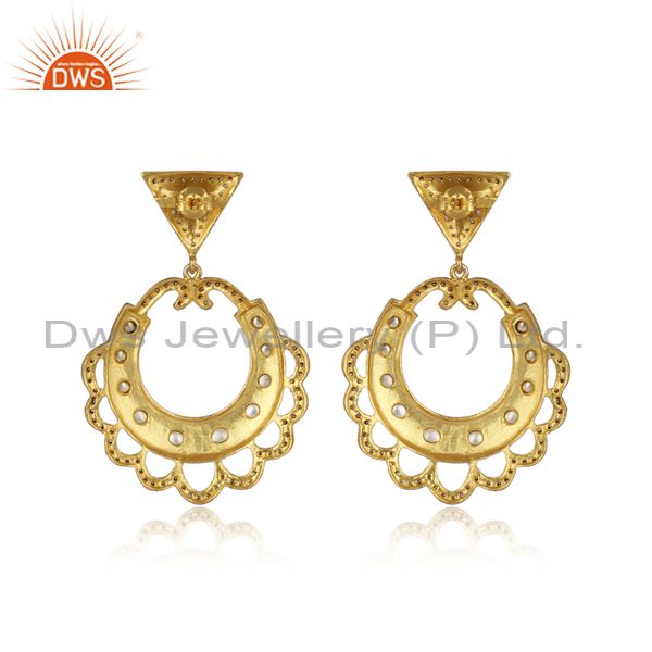 18K Gold Plated Sterling Silver Cubic Zirconia Victorian Style Dangle Earrings