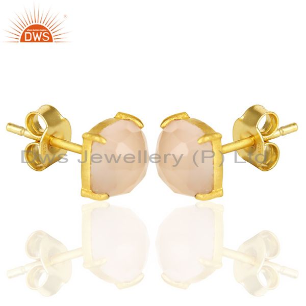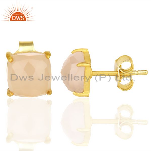 18K Gold Plated Sterling Silver Cushion Cut Chalcedony Prong Set Stud Earrings