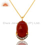18K Gold Plated Sterling Silver Cz And Red Onyx Stud Earrings