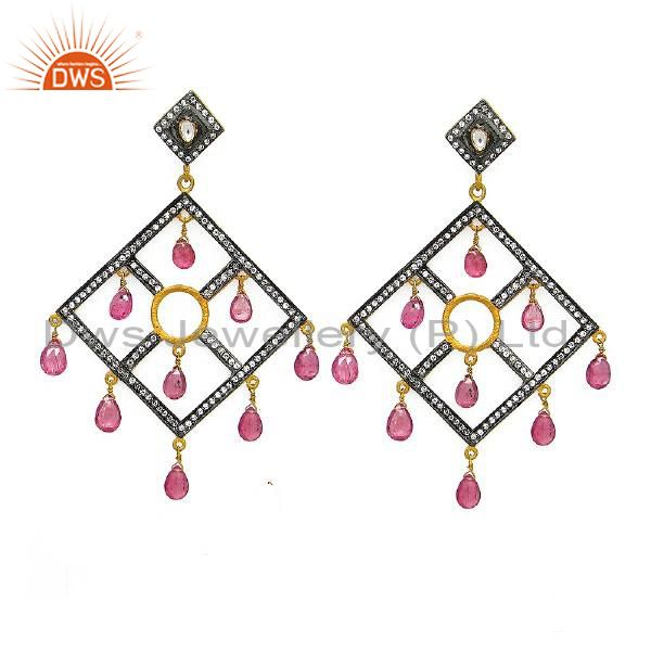 18K Gold Plated Sterling Silver Cz And Tourmaline Designer Chandelier Earrings