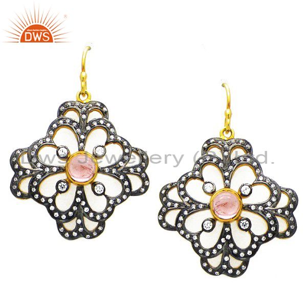 18K Gold Plated Sterling Silver Cz And Tourmaline Vintage Style Dangle Earrings