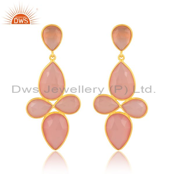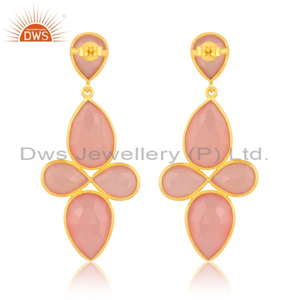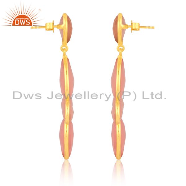 18K Gold Plated Sterling Silver Earring With Rose Chalcedony