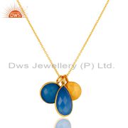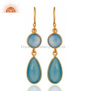 18K Gold Plated Sterling Silver Faceted Blue Chalcedony Gemstone Drop Earrings