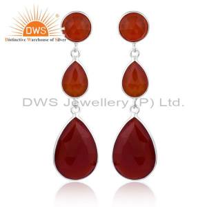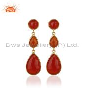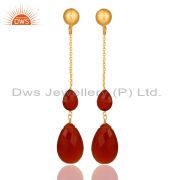 18K Gold Plated Sterling Silver Faceted Red Onyx Gemstone Double Drop Earrings