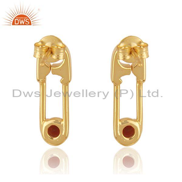 18k Gold Plated Sterling Silver Garnet Gemstone Pin Design Earrings Manufacturer