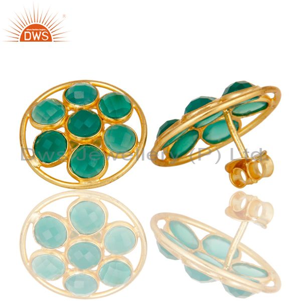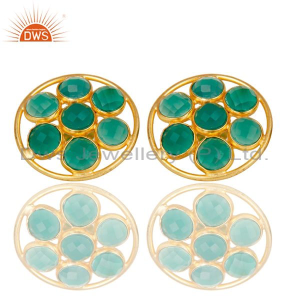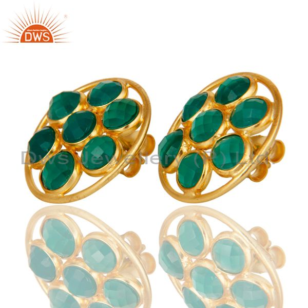 18K Gold Plated Sterling Silver Handmade Green Onyx Bezel Set Gemstone Earrings