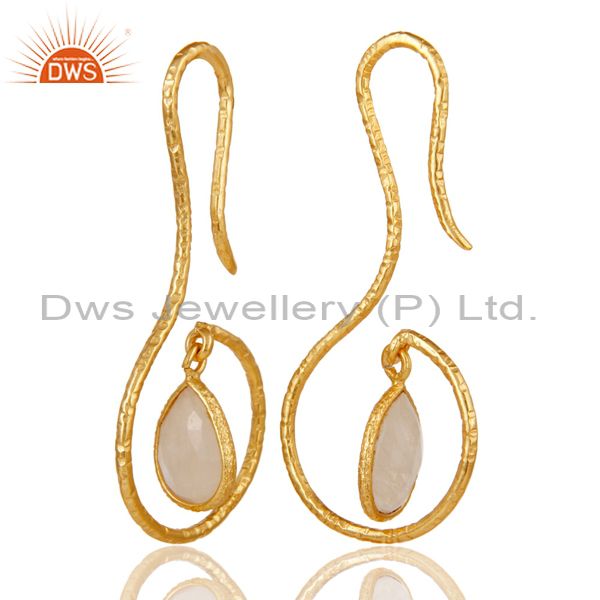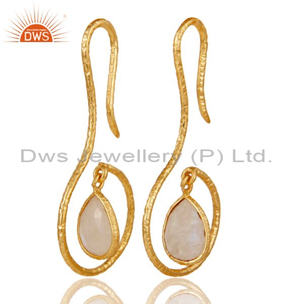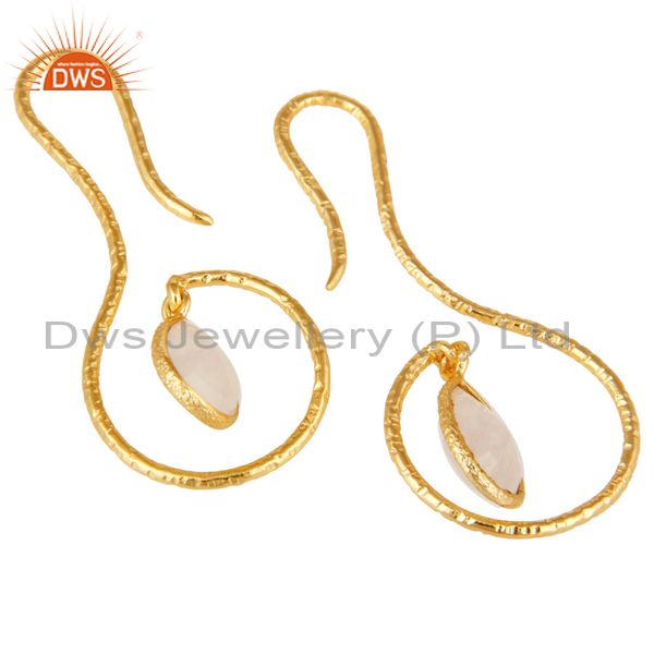 18k Gold Plated Sterling Silver Handmade Hang In Hook Rainbow Moonstone Earrings