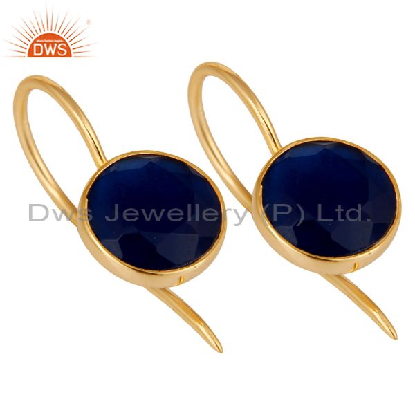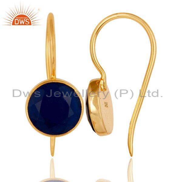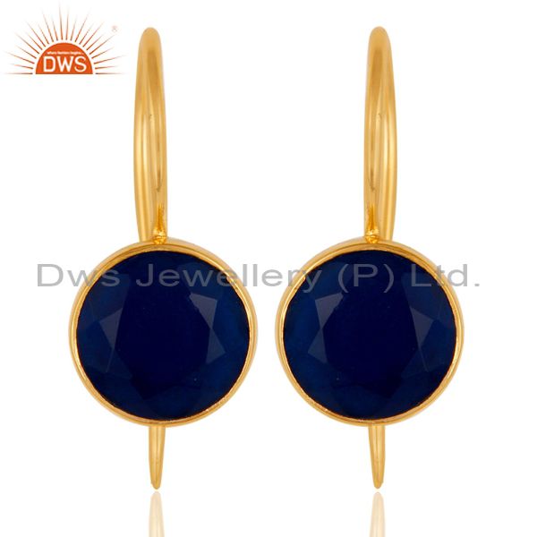 18k Gold Plated Sterling Silver Handmade Pin Style Earrings with Blue Corrundum
