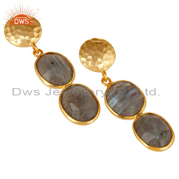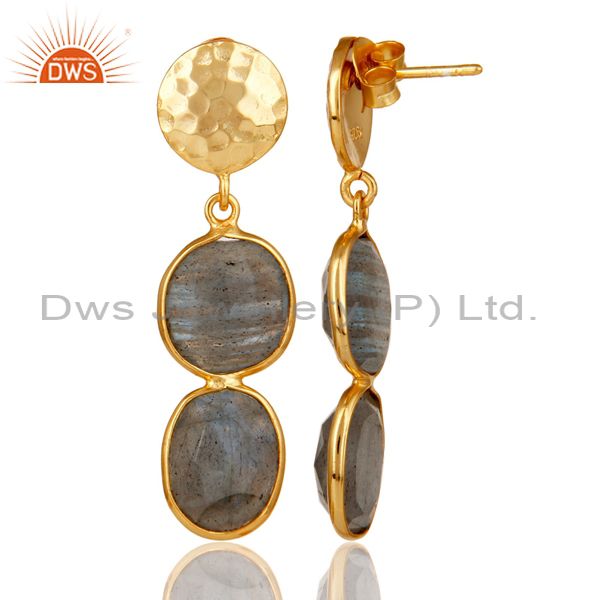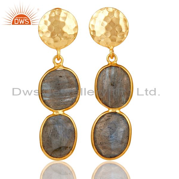 18K Gold Plated Sterling Silver Labradorite And Hammered Disc Dangler Earring