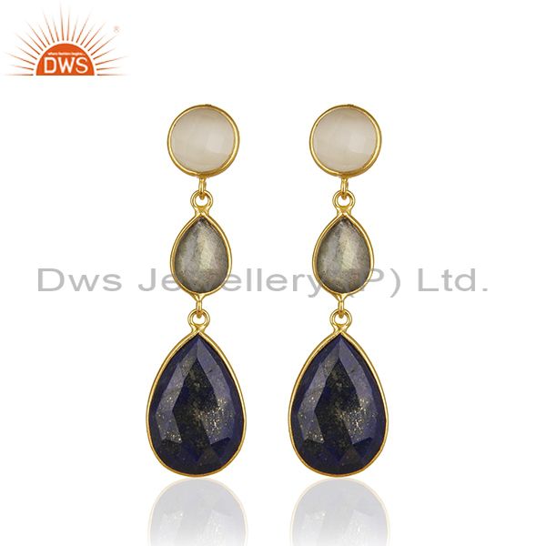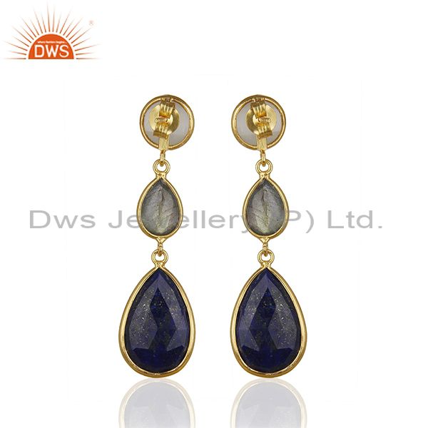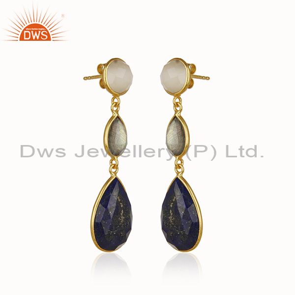 18K Gold Plated Sterling Silver Lapis Lazuli And Labradorite Dangle Earrings