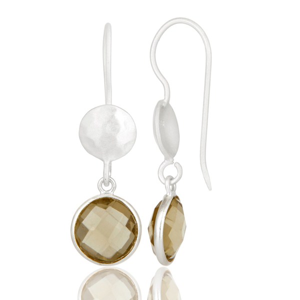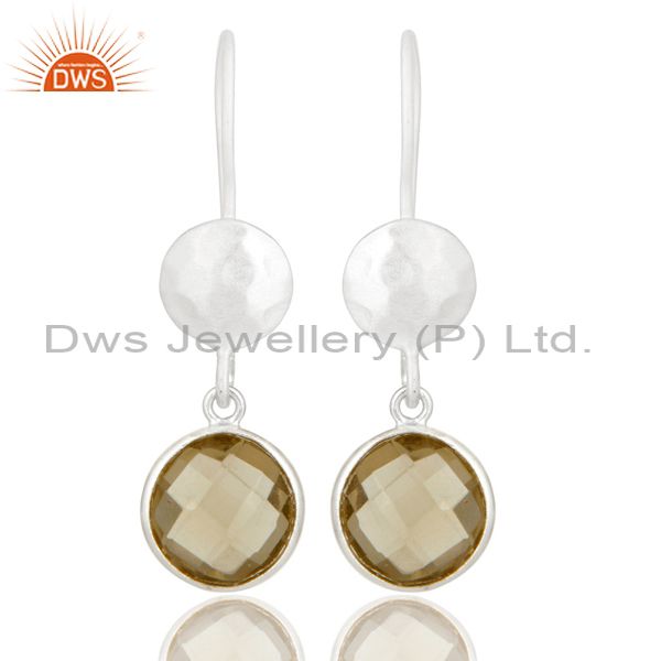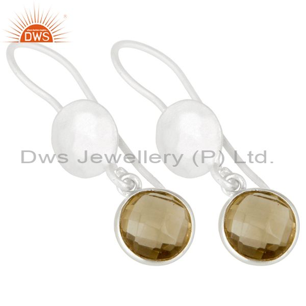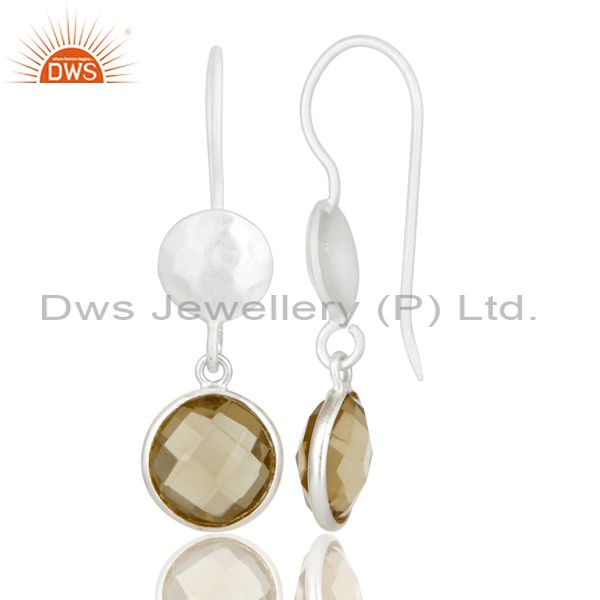 18K Gold Plated Sterling Silver Lemon Topaz Gemstone Bezel Set Dangle Earrings