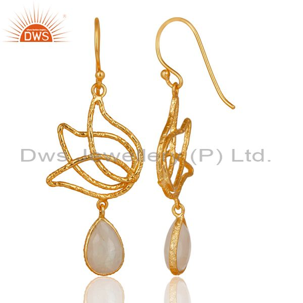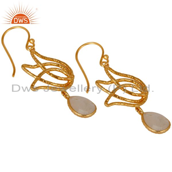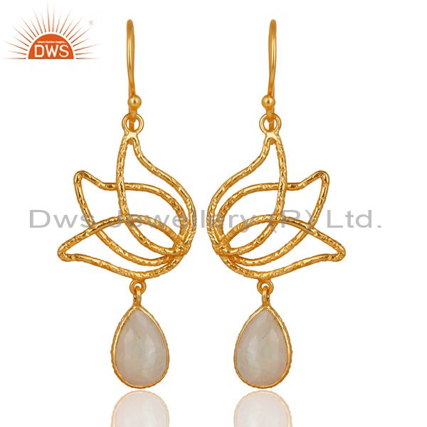 18k Gold Plated Sterling Silver Lotus Design Rainbow Moonstone Dangle Earrings