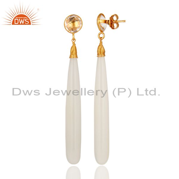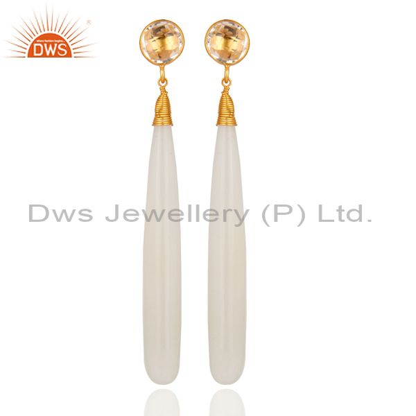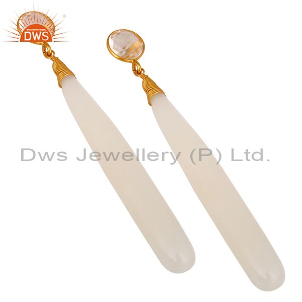 18K Gold Plated Sterling Silver Natural Crystal Quartz Teardrop Dangle Earrings