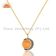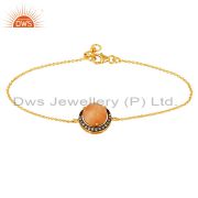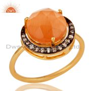 18K Gold Plated Sterling Silver Natural Moonstone And CZ Stud Earrings