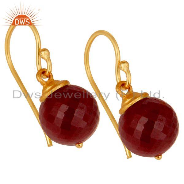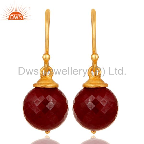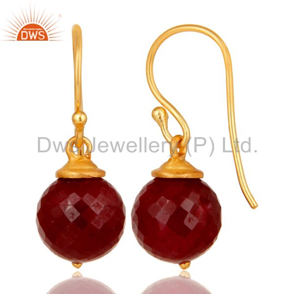 18K Gold Plated Sterling Silver Natural Ruby Dangle Hook Earrings For Womens