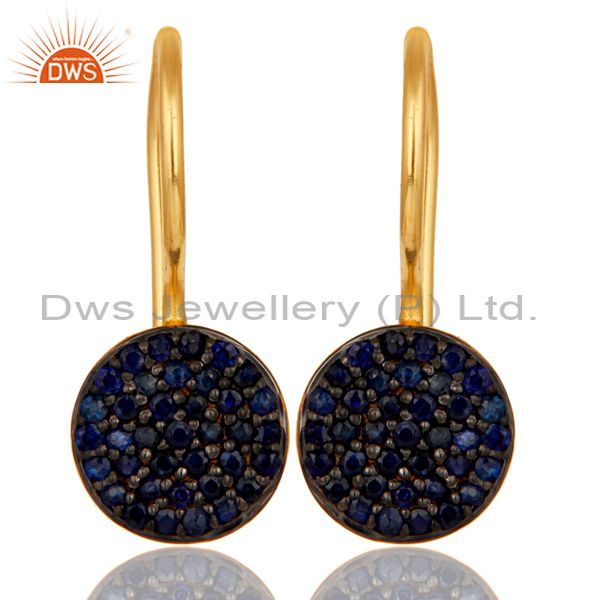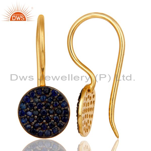18k Gold Plated Sterling Silver Pin Drop Design Earrings with Blue Sapphire