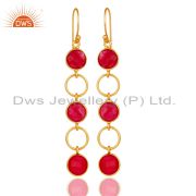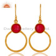 18K Gold Plated Sterling Silver Red Aventurine Bezel Set Ladies Stud Earrings