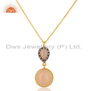 18K Gold Plated Sterling Silver Rose Chalcedony And Cz Bezel Set Dangle Earrings