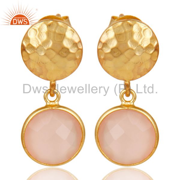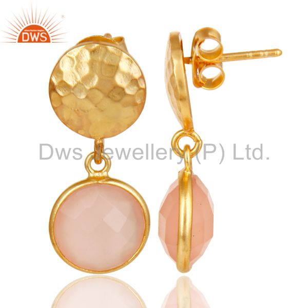 18K Gold Plated Sterling Silver Textured Design Dyed Chalcedony Drops Earrings