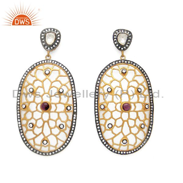 18K Gold Plated Sterling Silver Tourmaline Filigree Design Earrings With Cz