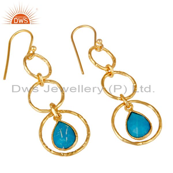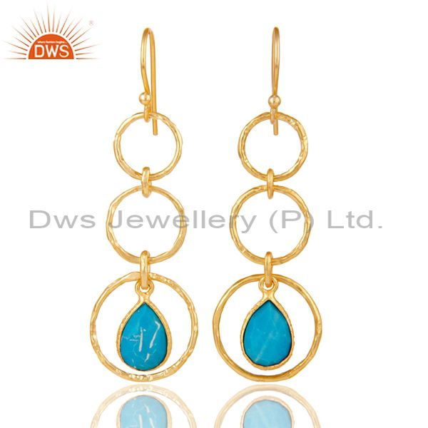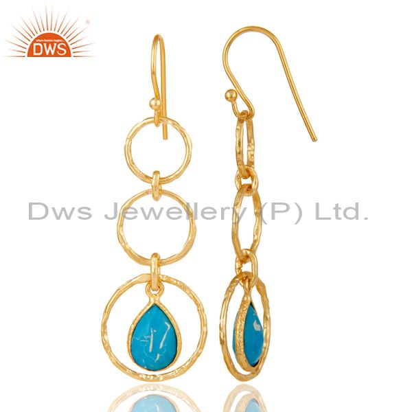 18k Gold Plated Sterling Silver Triple Round Cut Dangle Matrix Turquoise Earring