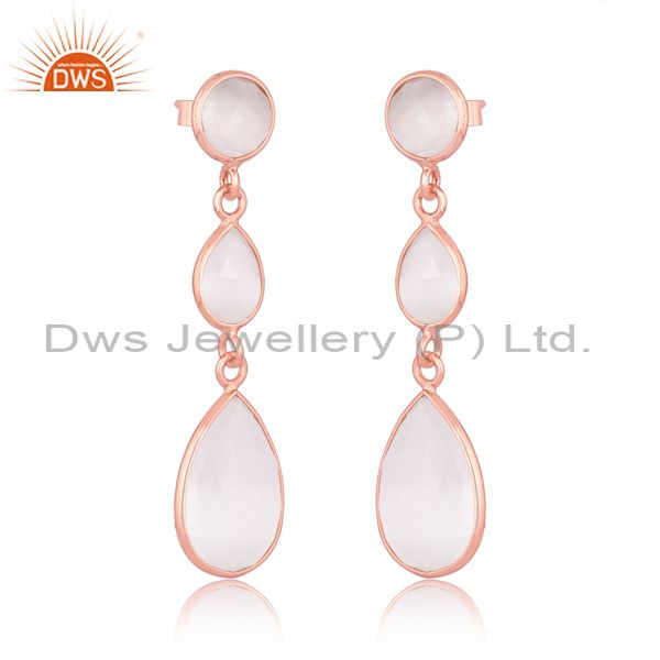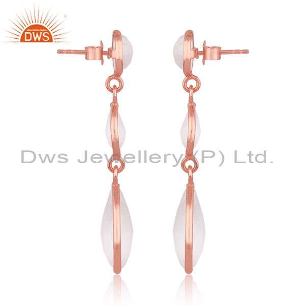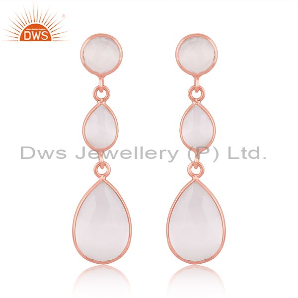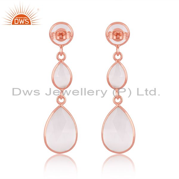 18K Gold Plated Sterling Silver White Moonstone Triple Gemstone Dangle Earrings