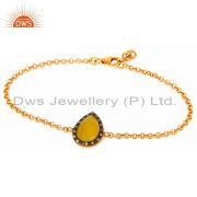 18K Gold Plated Sterling Silver Yellow Chalcedony & Cz Bezel Set Dangle Earrings