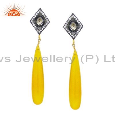 18K Gold Plated Sterling Silver Yellow Chalcedony And Cz Polki Dangle Earrings