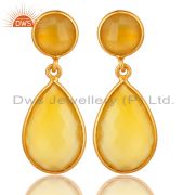 18K Gold Plated Sterling Silver Yellow Chalcedony Triple Stone Bezel Set Earring