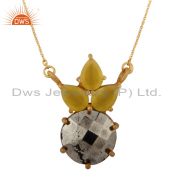 18K Gold Plated Sterling Silver Yellow Moonstone & Pyrite Gemstone Stud Earrings