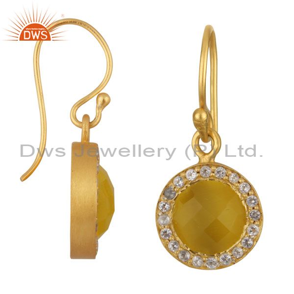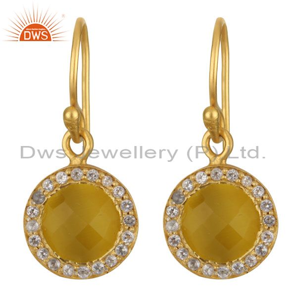 18K Gold Plated Sterling Silver Yellow Moonstone & White Topaz Halo Drop Earring