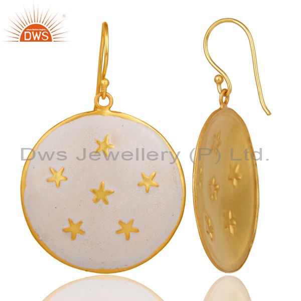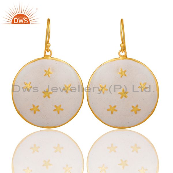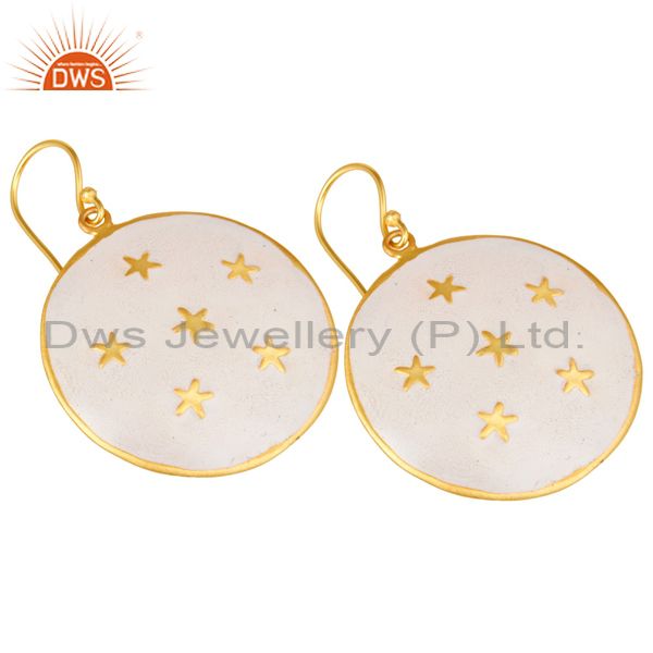 18K Gold Plated White Enamel Star Design Ladies Fashion Hook Brass Earrings