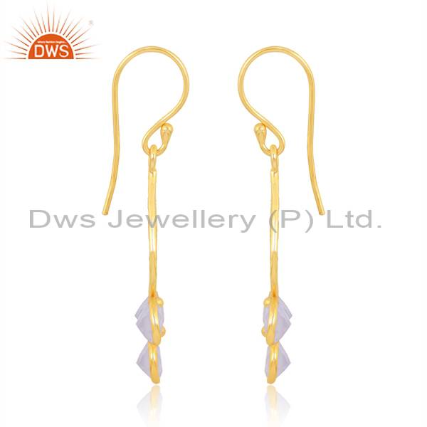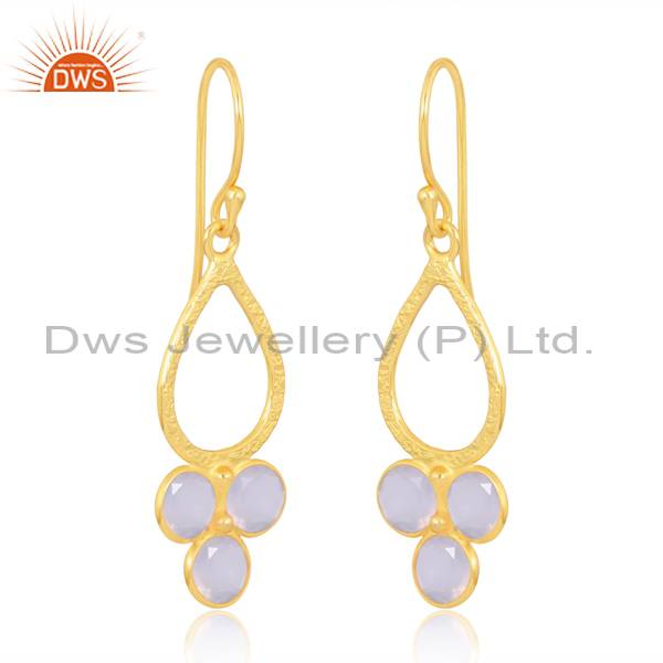 18K Gold Silver Earrings With Natural Lavender Chalcedony