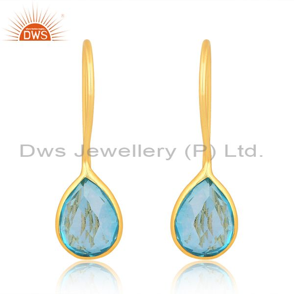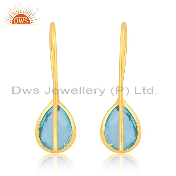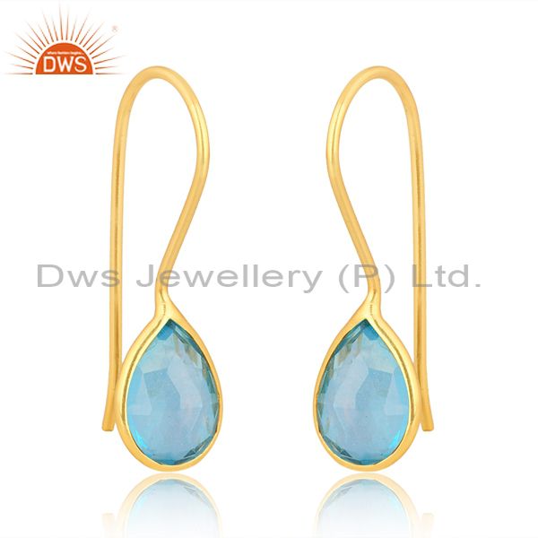 18K Gold Sterling Silver Earring Aquamarine Quartz