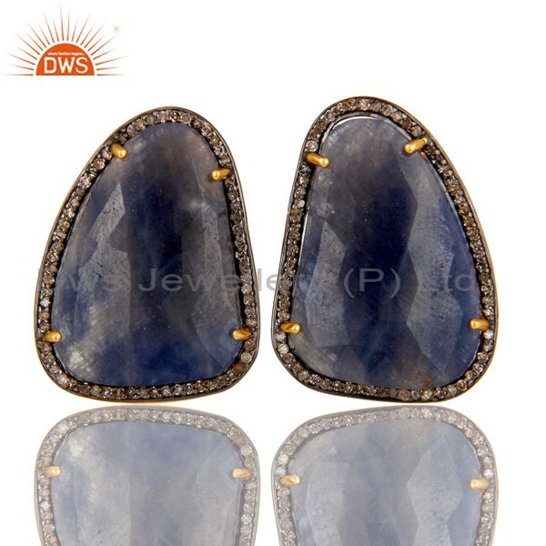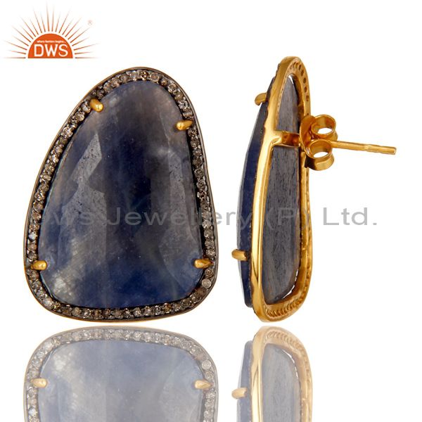 18K Gold Sterling Silver Pave Diamond And Blue Sapphire Fashion Stud Earrings