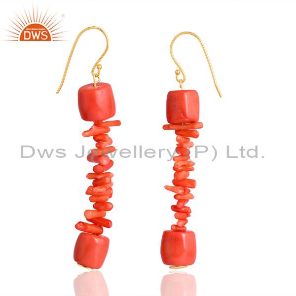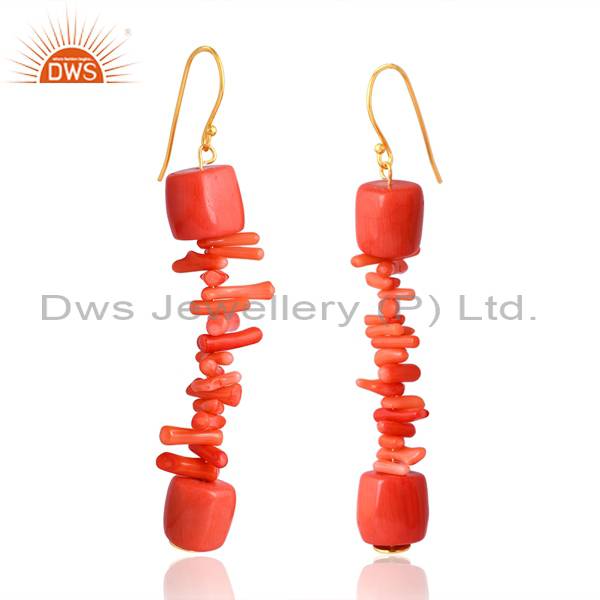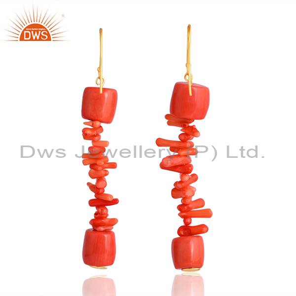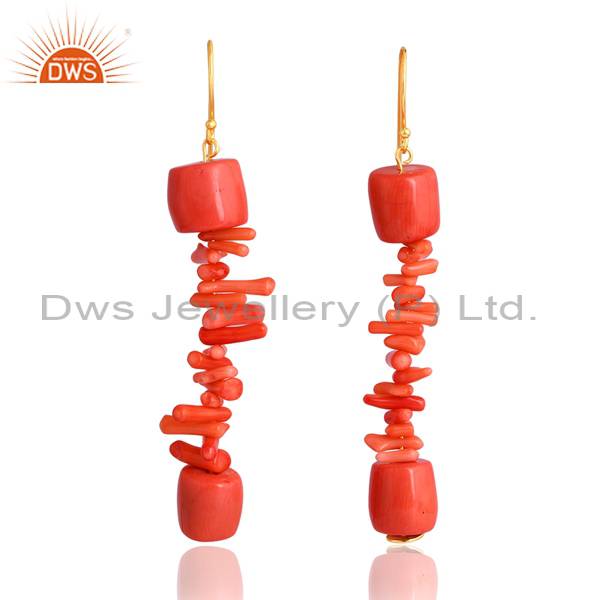 18K Gold Sterling Silver Pink Coral Cultured Earrings