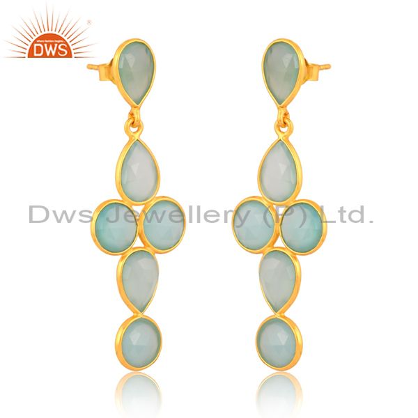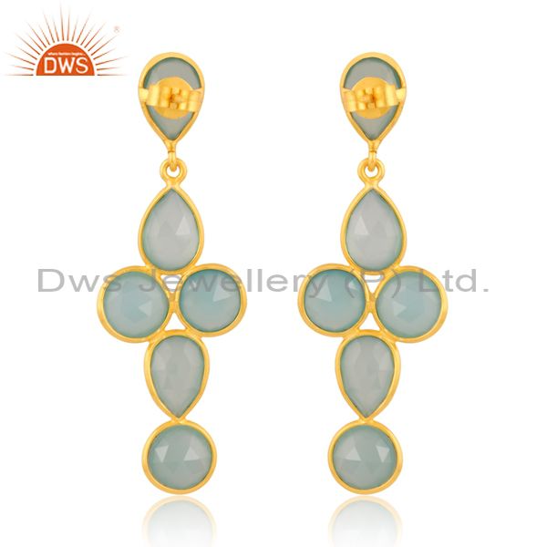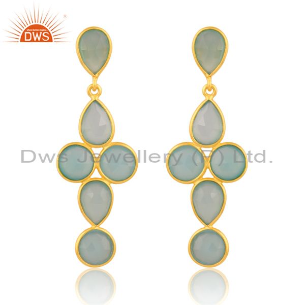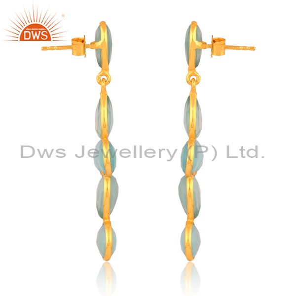 18K Gold Sterling Silver Ring With Aqua Chalcedony Gems