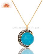 18K Gold Sterling Silver Turquoise And Cz Half Moon Star Crescent Moon Earrings