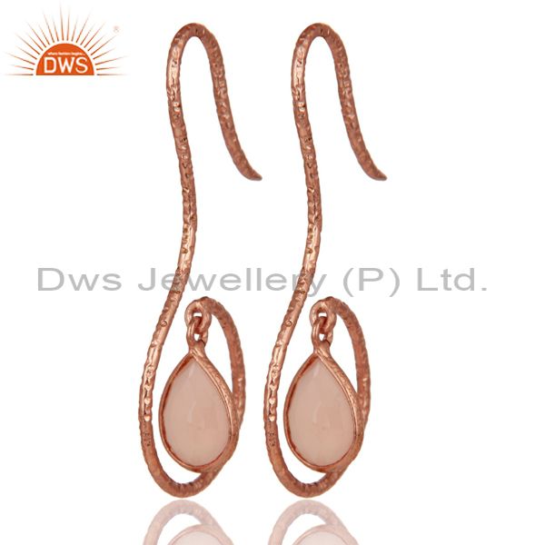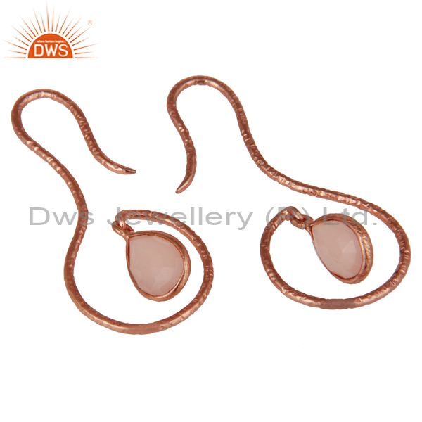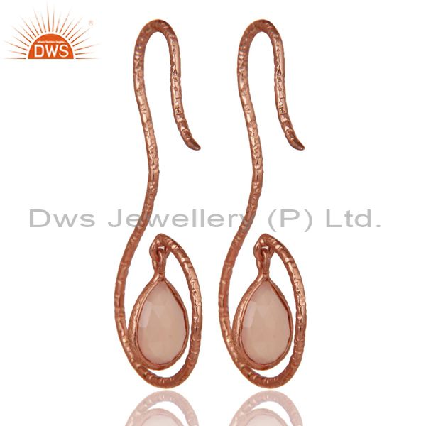 18k Rose Gold 925 Sterling Silver Handmade Hang In Hook Dyed Chalcedony Earrings