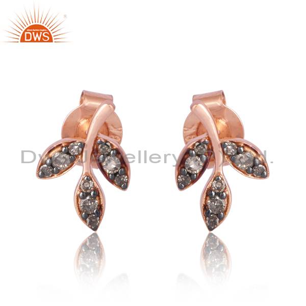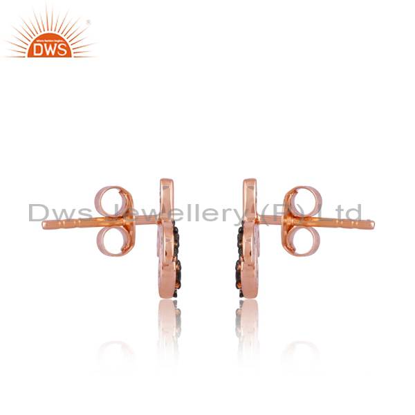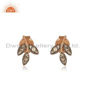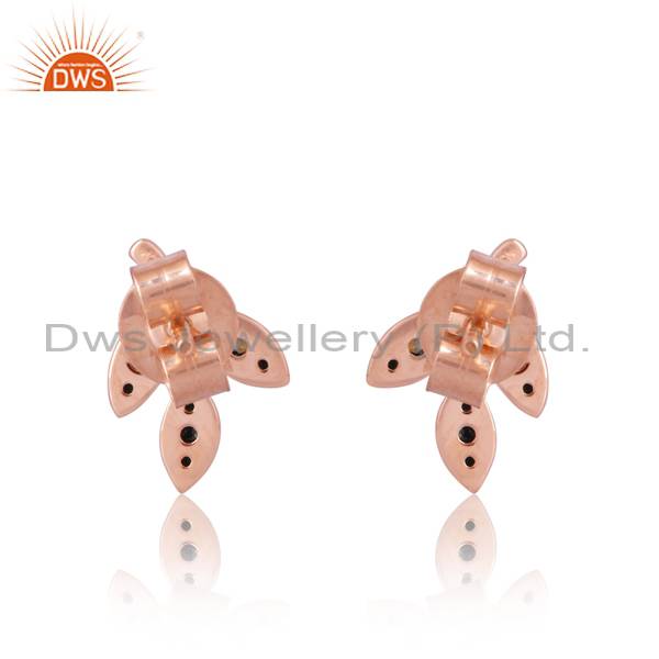 18K Rose Gold Diamond Cut Round Earrings - Rose & Black