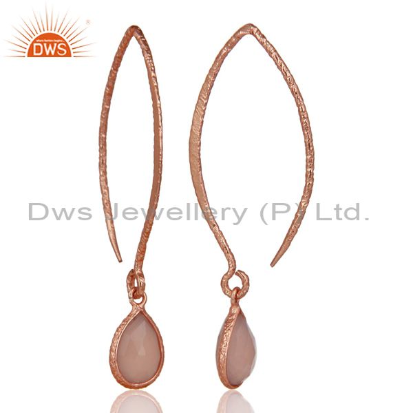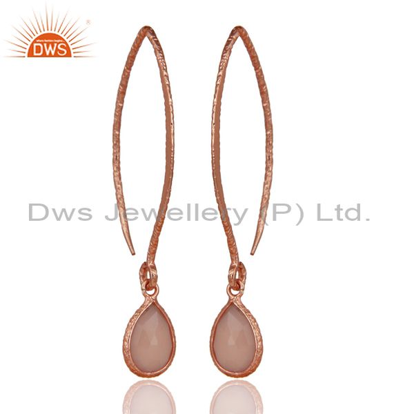 18k Rose Gold Plated 925 Silver Bazel Set Hoop In Hook Chalcedony Drop Earrings