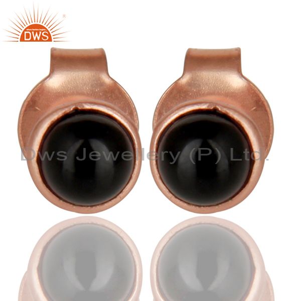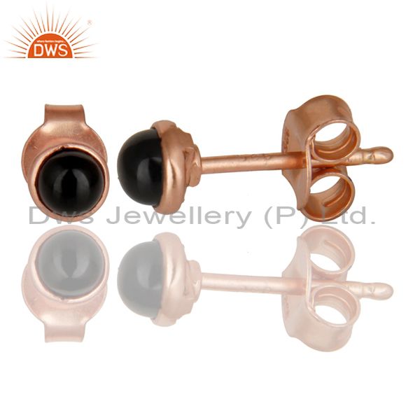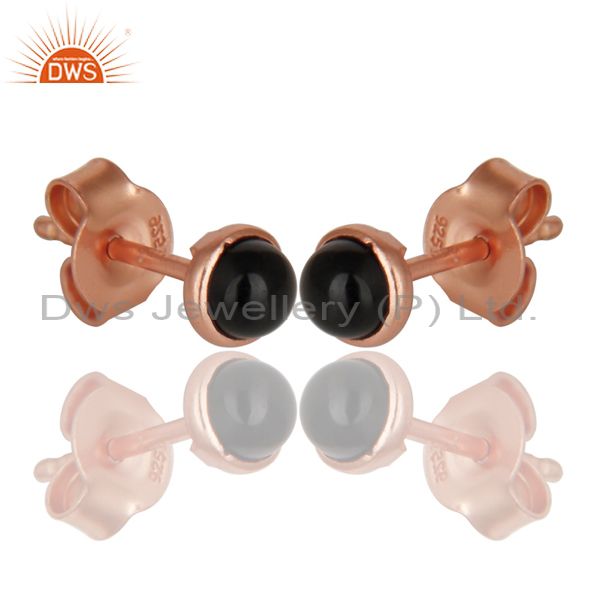 18K Rose Gold Plated 925 Sterling Silver 4Mm Round Black Onyx Studs Earrings